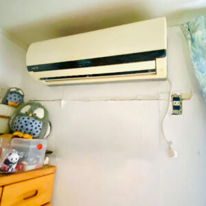 そしてエアコン用の穴をあけ、コンセントも新設しました♪